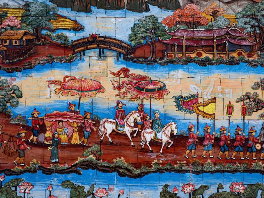 Hình ảnh Trạng nguyên Lê Ích Mộc “áo gấm về làng” được khắc họa tại Khu tưởng niệm