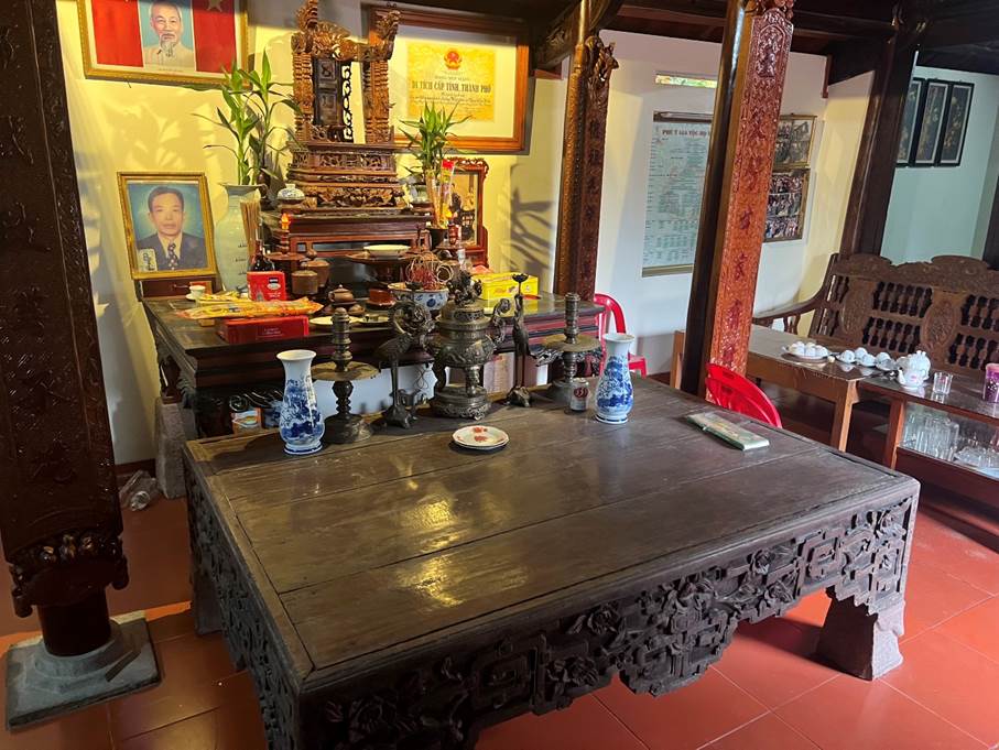 Trải thời gian lịch sử, di tích Cơ sở Cách mạng kháng chiến chống Pháp nhà cụ Nguyễn Thị Bầm còn bảo lưu được nhiều di vật, cổ vật góp phần minh chứng cho giá trị lịch sử, văn hoá, nguồn gốc của di tích:01 Nhang án gỗ, niên đại đầu thế kỷ XX; 01 Sập thờ gỗ, chạm nổi văn lá triện, niên đại cuối thế kỷ XIX; 01 đôi câu đối với nội dung: “Vương phụ phần cam gia hữu mẫu. Phần hương thức chính ngạc thừa hoa”; 01 Bát hương sành, niên đại thế kỷ XIX; 08 chân sập đá và tảng kê chân cột, niên đại thế kỷ XIX; Di tích còn lưu giữ nhiều đài quả, đĩa sành... niên đại đầu thế kỷ XX.