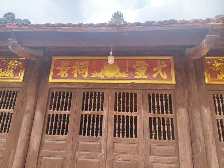 Phía ngoài, qua khoảng sân là vào chính điện. Bờ nóc chùa có kiểu lưỡng long chầu bánh xe luân hồi, phía hai bờ hồi có kiểu tay ngai. Chùa lợp ngói mũi hài truyền thống. Ngôi đền có tấm bia cổ "Hộ Thần" được xây dựng ngày 7/11/1822 thời kỳ vua Thành Thái.