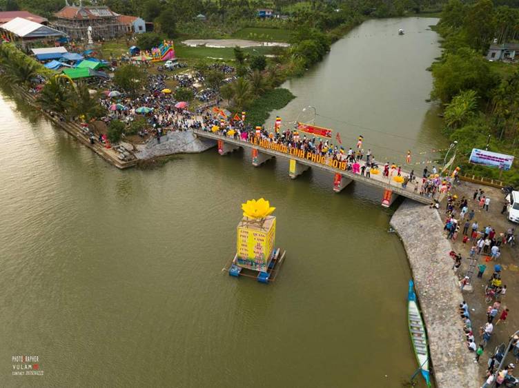 Năm 2013: Rước tượng Bồ Tát Quan Âm chất liệu bằng đá hoa cương cao 4,5 m nặng hơn 2 tấn được di chuyển bằng đường sông.