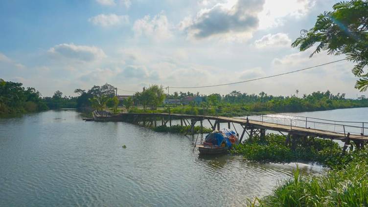 - Lần thứ hai làm cây cầu tre đi được xe máy xe thồ, chủ yếu phục vụ phương tiện qua lại đưa vật liệu phục vụ cho công trình xây dựng.