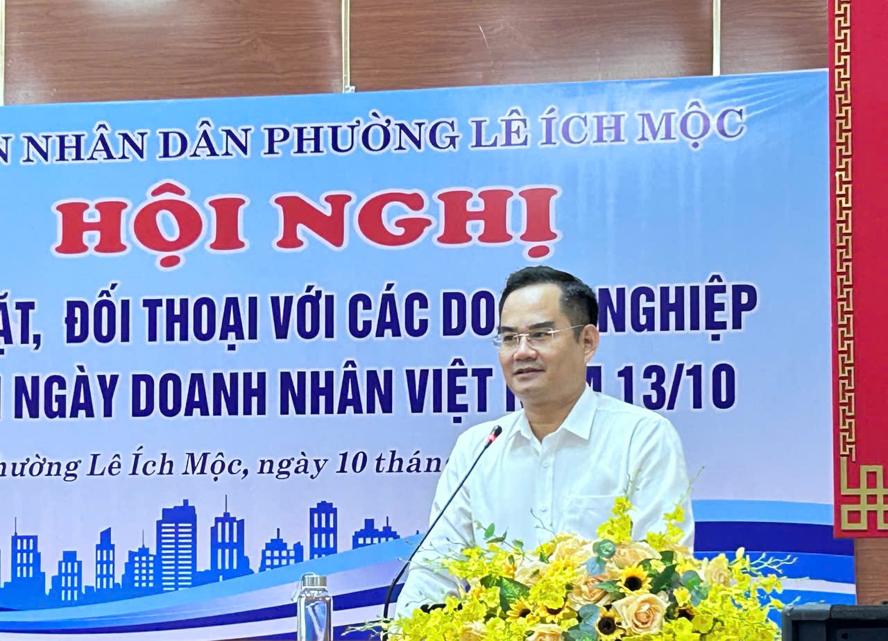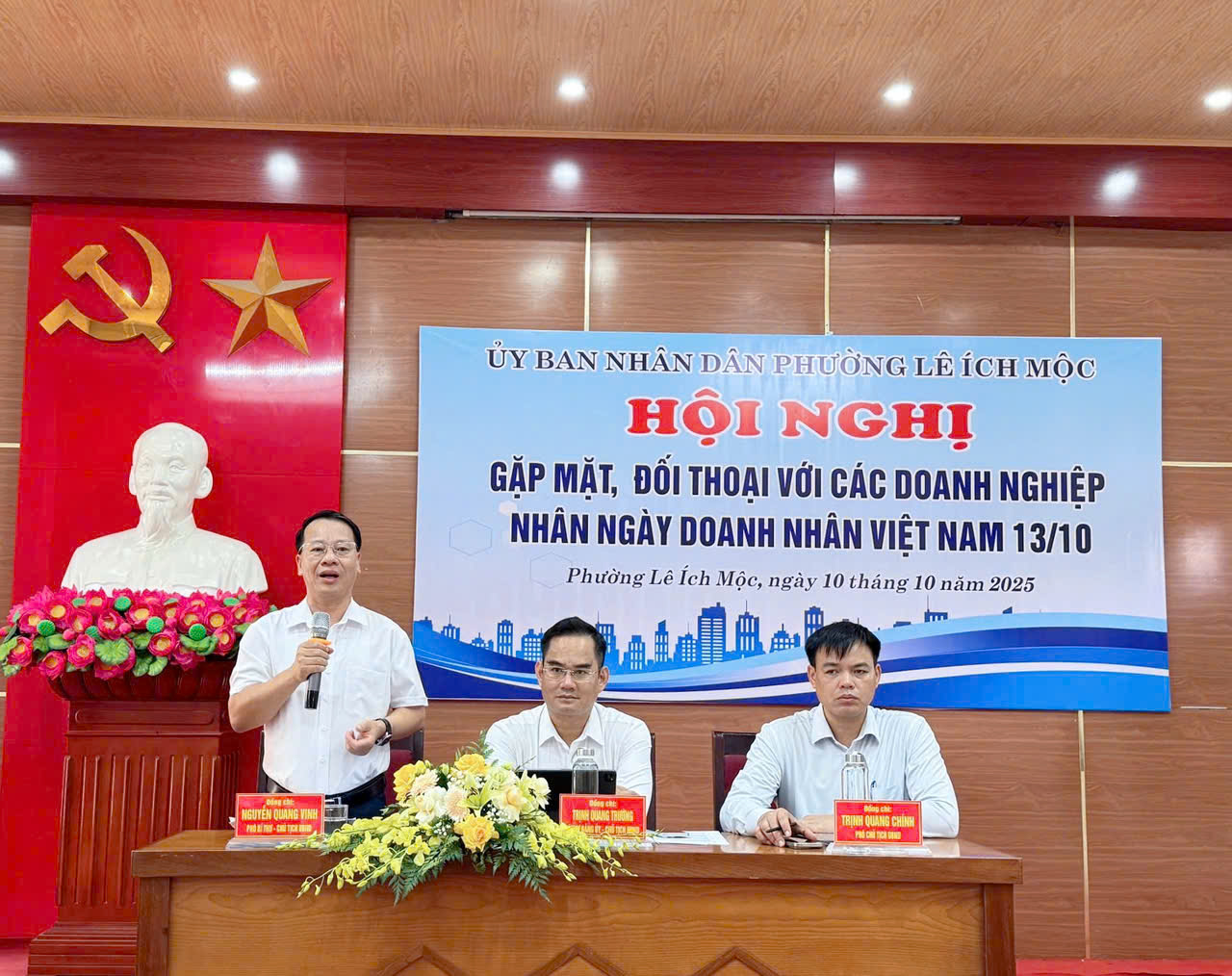 Chiều ngày 10/10/2025, UBND phường Lê Ích Mộc tổ chức Hội nghị gặp mặt, đối thoại với các doanh nghiệp, hộ kinh doanh tiêu biểu trên địa bàn nhân dịp kỷ niệm Ngày Doanh nhân Việt Nam 13/10.