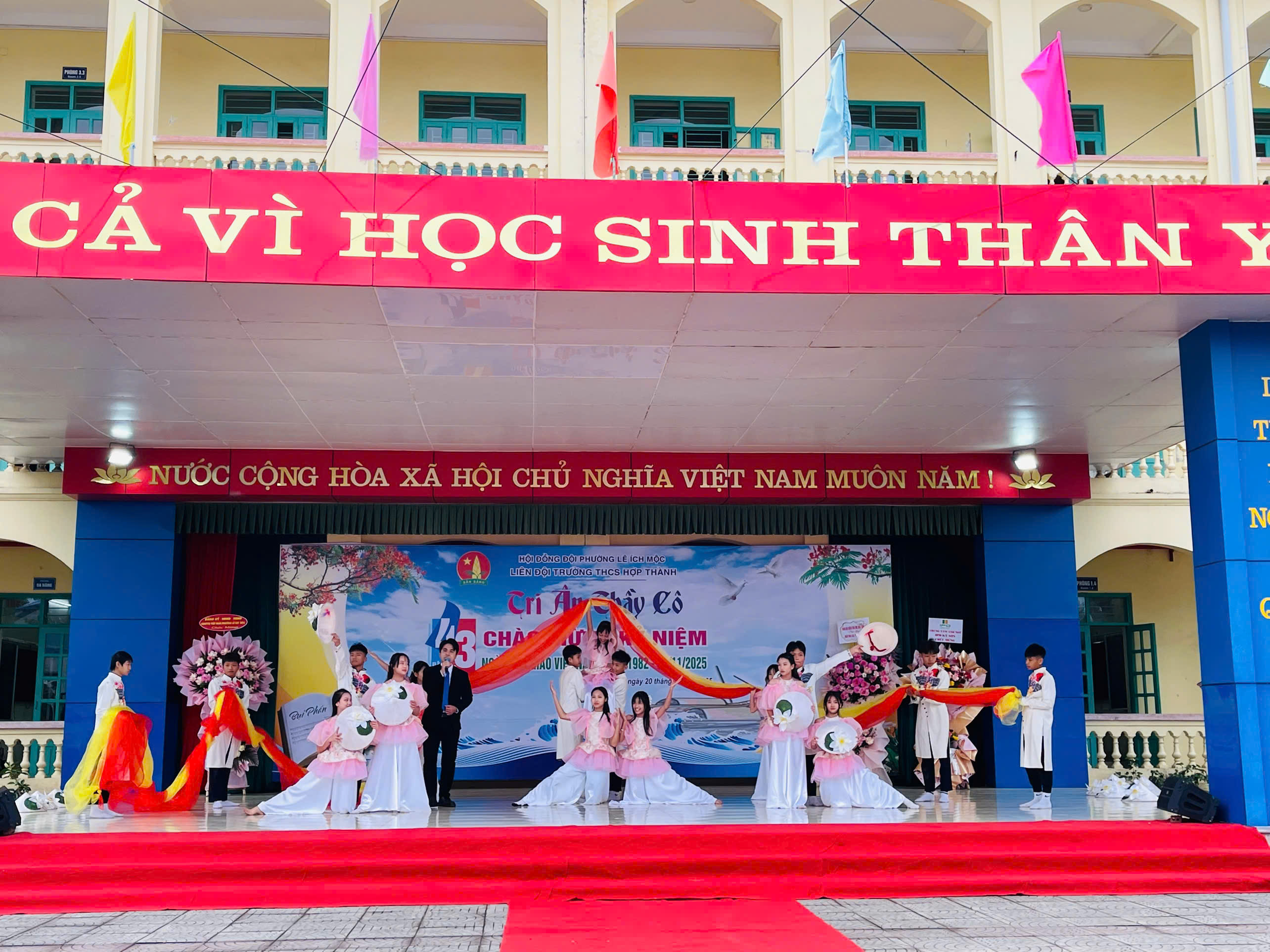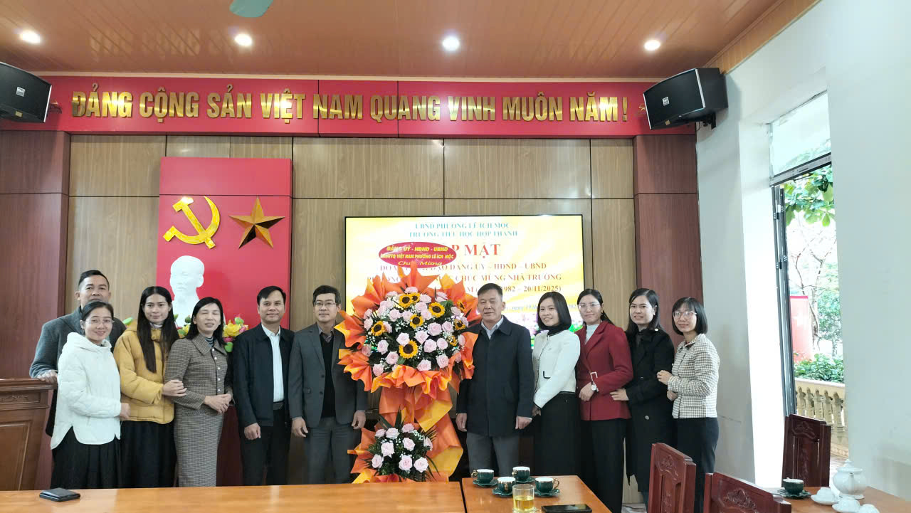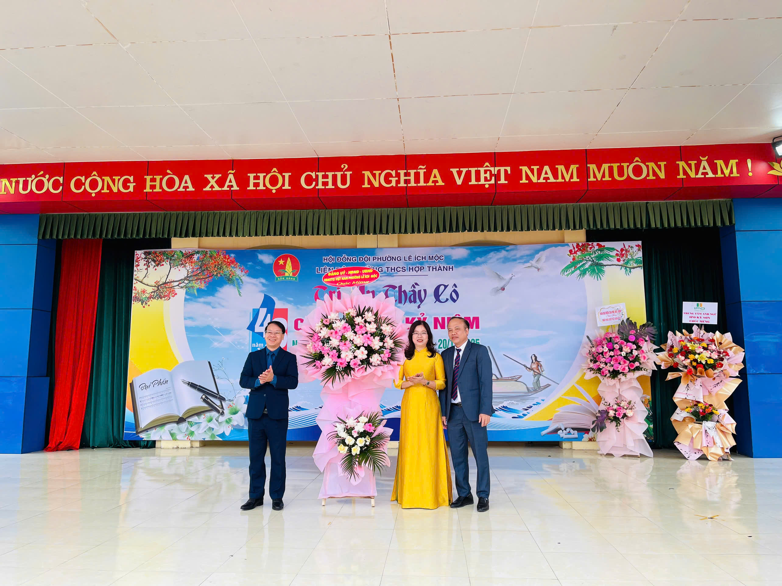 Đồng chí Nguyễn Quang Vinh - PBT Đảng ủy, Chủ tịch UBND phường tặng hoa chúc mừng các thầy cô giáo trường THCS Hợp ThànhTại các buổi gặp gỡ, lãnh đạo phường khẳng định: đội ngũ giáo viên của phường luôn giữ vai trò nòng cốt trong việc nâng cao chất lượng giáo dục, xây dựng môi trường học tập lành mạnh, hình thành các giá trị đạo đức, kỹ năng sống cho học sinh. Những đổi mới trong phương pháp dạy học, sự nỗ lực trong công tác quản lý, chuyển đổi số, ứng dụng công nghệ thông tin của các trường thời gian qua đã góp phần quan trọng vào sự phát triển chung của địa phương.