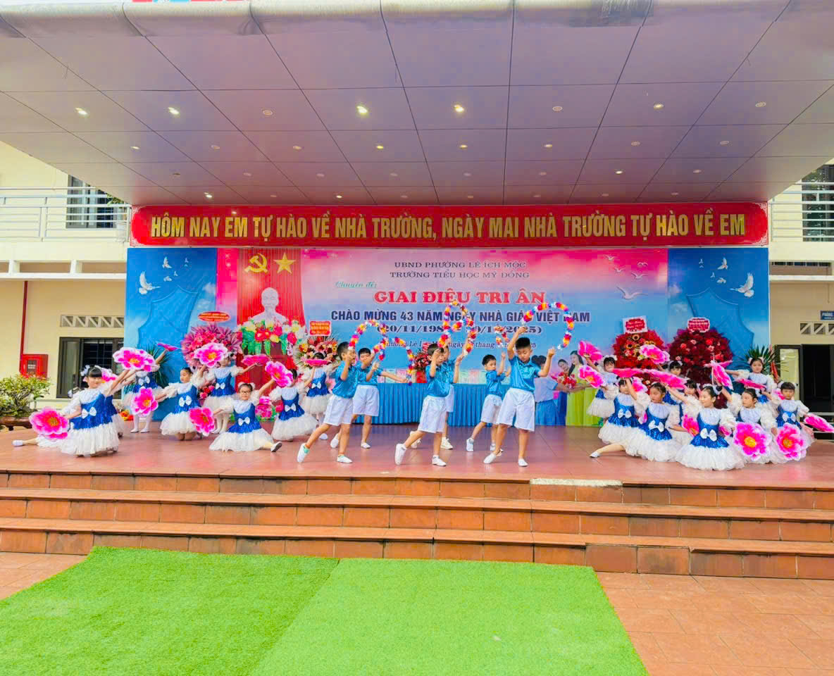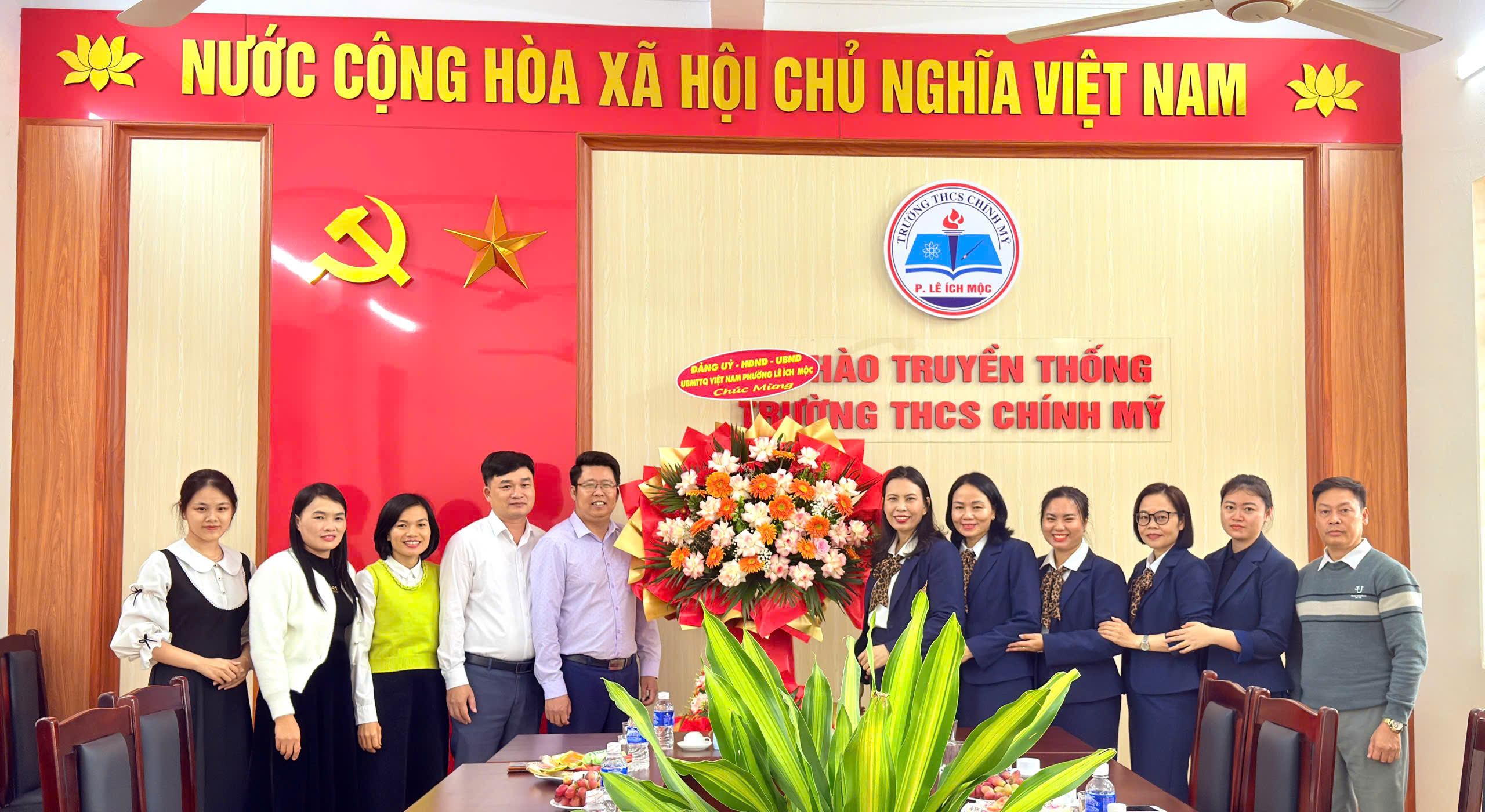 Đồng chí Trịnh Quang Trường - Bí thư Đảng ủy, Chủ tịch HĐND phường tặng hoa chúc mừng các thầy cô giáo trường Tiểu học Chính MỹTrong không khí ấm áp, trang trọng của ngày tri ân, các đoàn công tác do lãnh đạo Đảng uỷ, HĐND, UBND, Ủy ban MTTQ Việt Nam phường làm trưởng đoàn đã trực tiếp đến từng nhà trường, trao tặng những bó hoa tươi thắm và gửi lời chúc mừng tốt đẹp nhất đến toàn thể cán bộ quản lý, giáo viên và nhân viên. Đây không chỉ là lời chúc mừng, mà còn là sự ghi nhận, tôn vinh những cống hiến bền bỉ, sự tận tâm và trách nhiệm của các thầy cô trong suốt thời gian qua.