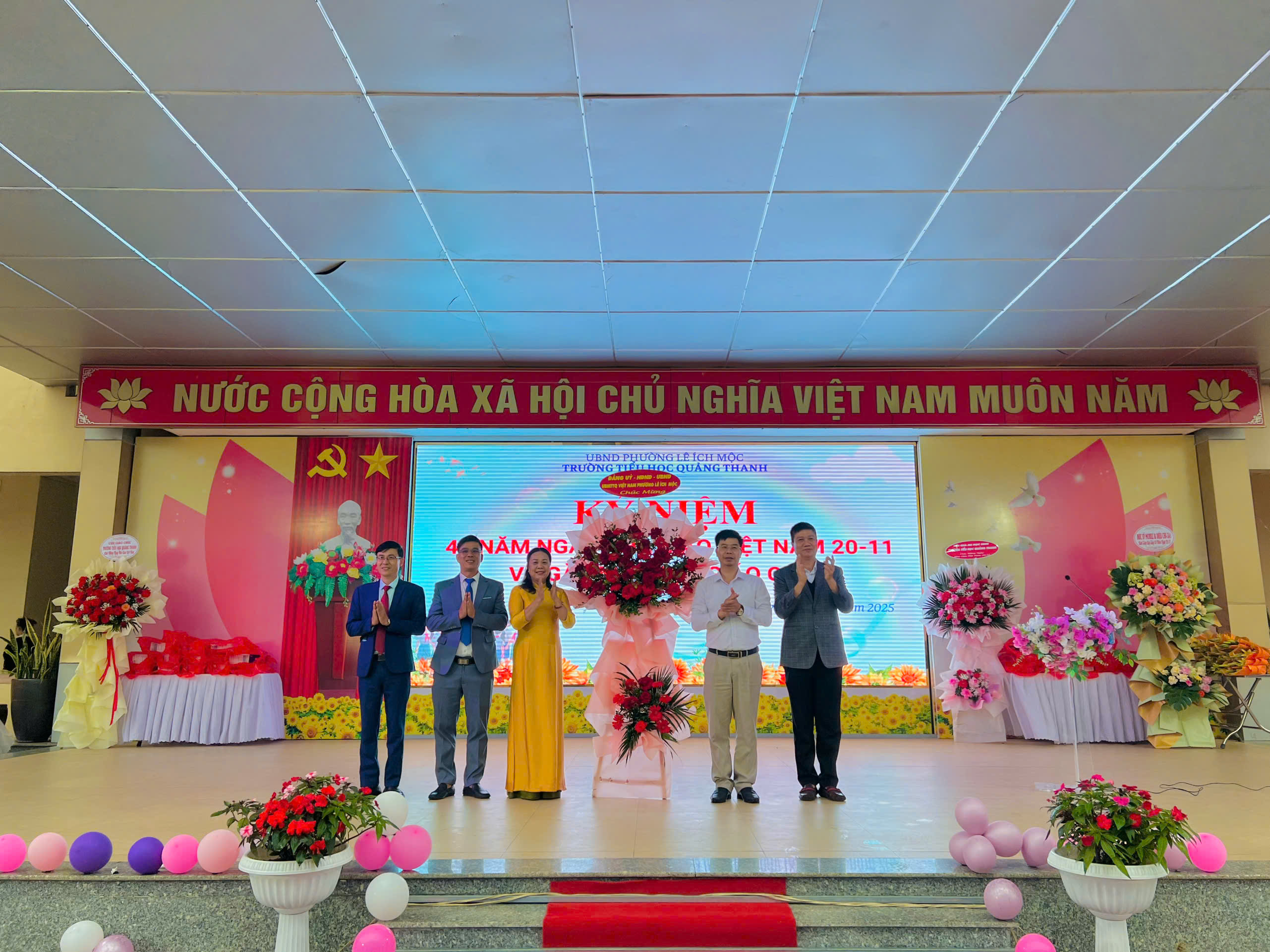 Đồng chí Lê Nam Thắng - Phó Bí thư thường trực Đảng ủy tặng hoa chúc mừng thầy cô giáo Trường Mầm non Quảng ThanhĐại diện các nhà trường xúc động bày tỏ sự cảm ơn trước tình cảm, sự quan tâm của cấp uỷ, chính quyền và nhân dân phường Lê Ích Mộc. Các trường khẳng định đây là nguồn động viên lớn, tiếp thêm động lực để tập thể sư phạm phát huy truyền thống, tiếp tục đổi mới sáng tạo, nâng cao chất lượng giáo dục, hoàn thành tốt các mục tiêu năm học 2025–2026.