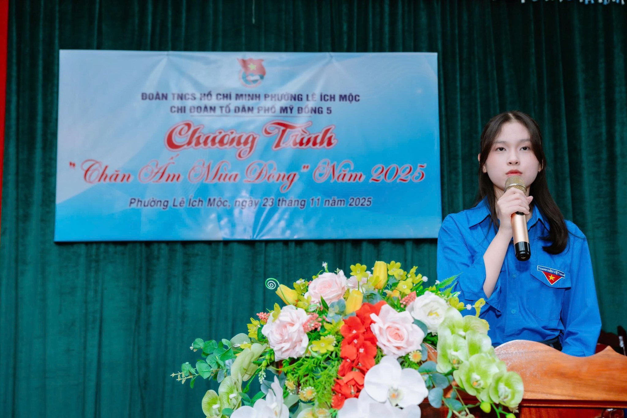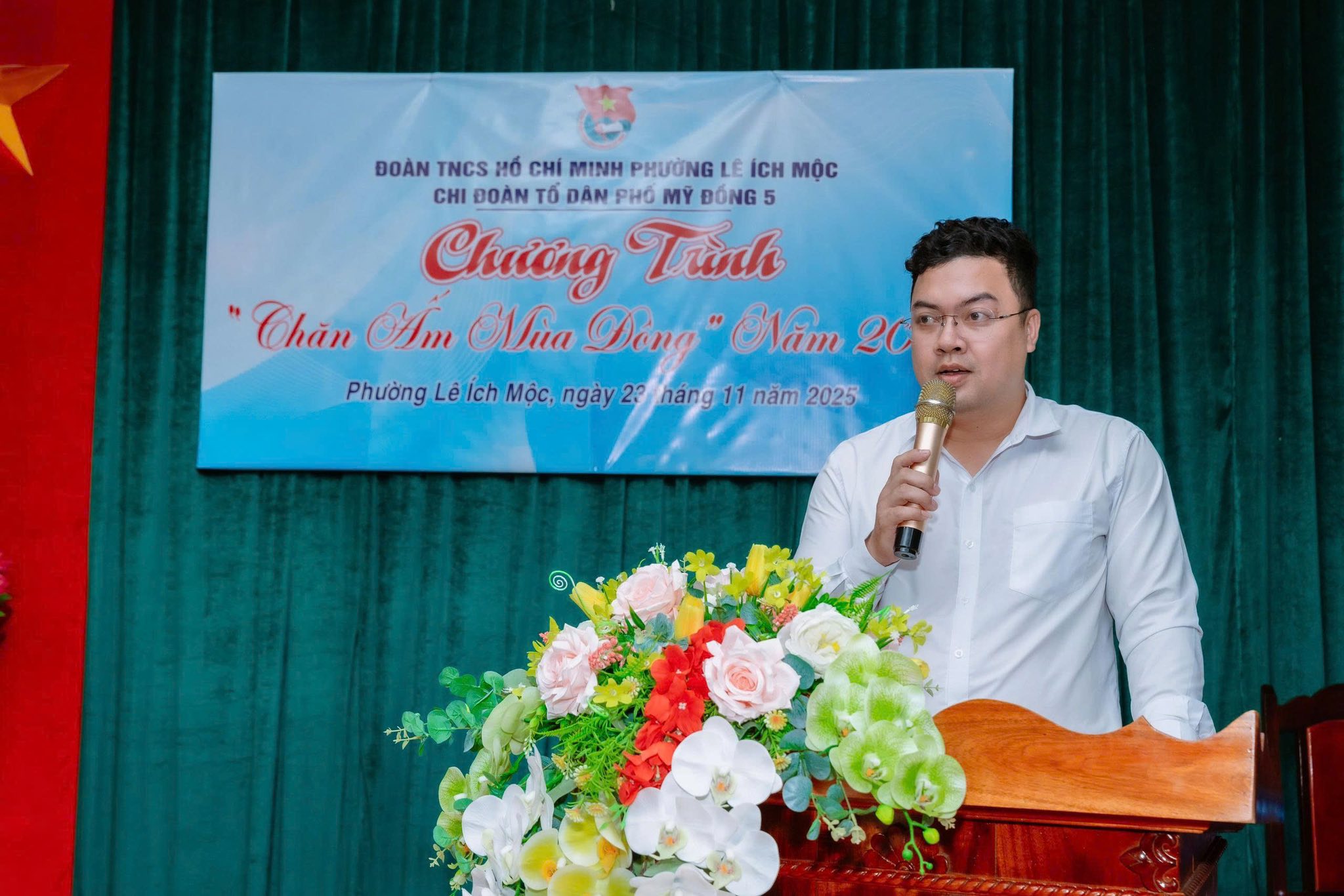 Ngày 23 tháng 11 năm 2025, tại phường Lê Ích Mộc, Chi đoàn tổ dân phố Mỹ Đồng 5 – trực thuộc Đoàn TNCS Hồ Chí Minh Phường Lê Ích Mộc – đã tổ chức chương trình thiện nguyện đầy ý nghĩa mang tên “Chăn Ấm Mùa Đông”. Đây không chỉ là một hoạt động an sinh xã hội, mà còn là hành trình lan tỏa yêu thương, góp phần sẻ chia những khó khăn với người dân trong mùa lạnh sắp đến.