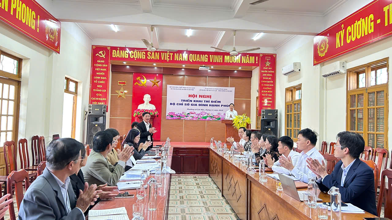 Chiều ngày 28/11/2025, UBND Phường Lê Ích Mộc phối hợp với Sở Văn hóa, Thể thao và Du lịch thành phố Hải Phòng tổ chức Hội nghị triển khai thực hiện thí điểm Bộ chỉ số Gia đình hạnh phúc trên địa bàn phường. Đây là mô hình được Bộ Văn hóa, Thể thao và Du lịch lựa chọn để đánh giá thực trạng đời sống gia đình, từ đó đề xuất giải pháp nâng cao chất lượng môi trường văn hóa cơ sở.