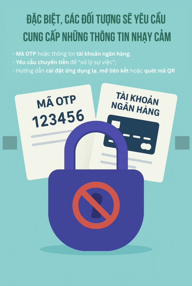 2. Không cung cấp thông tin cá nhân, giấy tờ, tài khoản ngân hàng, mã xác thực cho bất kỳ ai qua điện thoại.